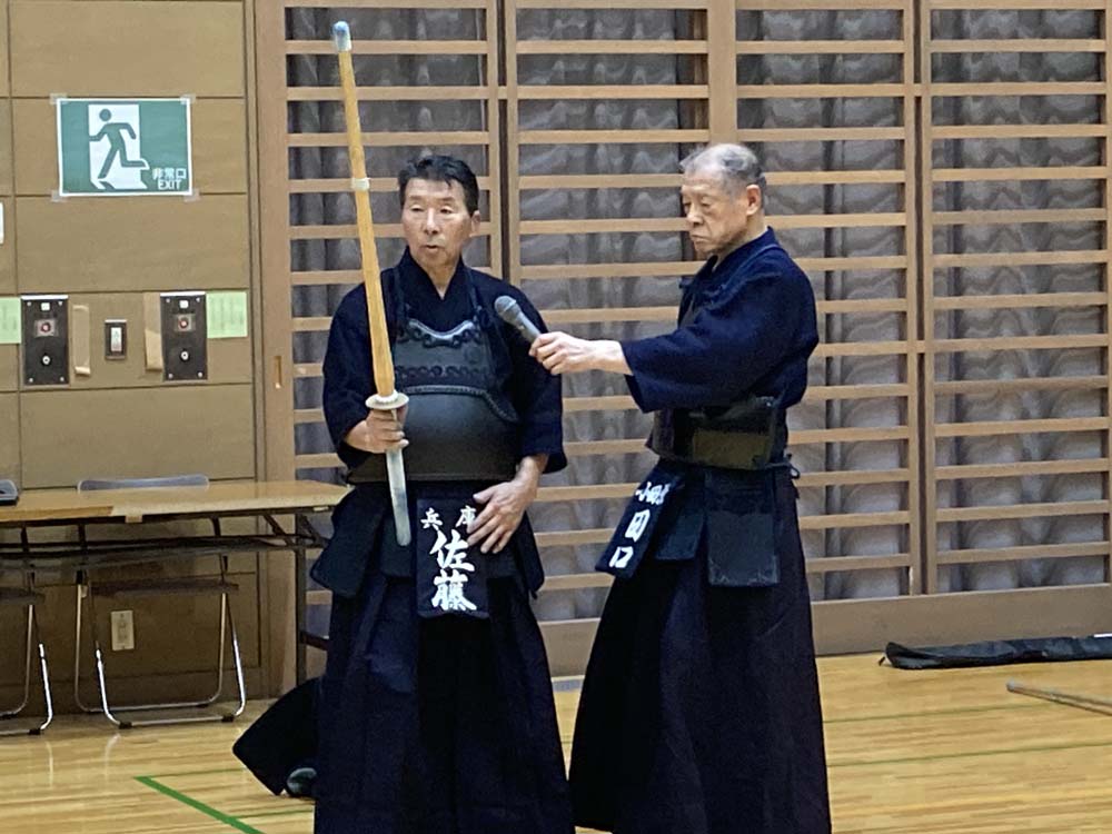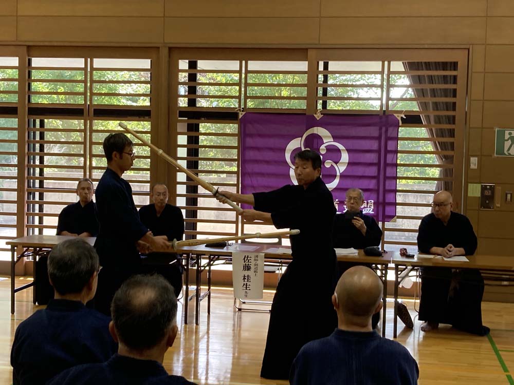 昇段審査を控える先生方にとっては、本番さながらの模擬審査を受ける貴重な機会となりました。佐藤先生からいただいた的確なご指導は、各々の課題を明確にし、審査に臨む大きな自信となりました。その後の指導稽古では、参加者一人ひとりが先生に真剣に打ち込み、体育館は熱気に満ち溢れました。