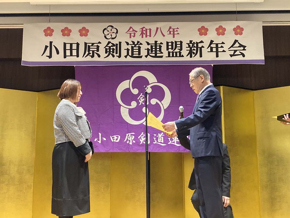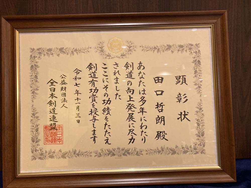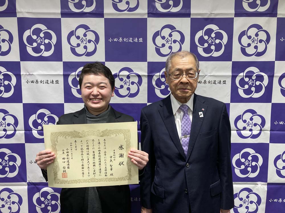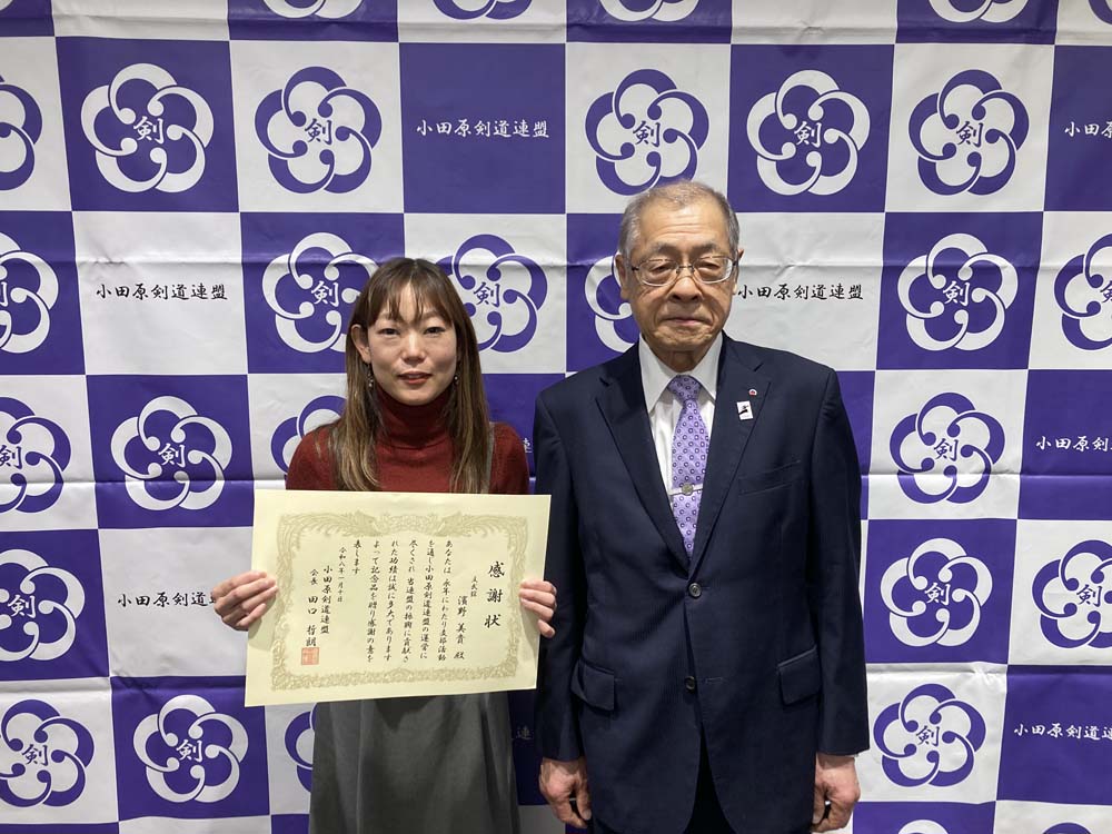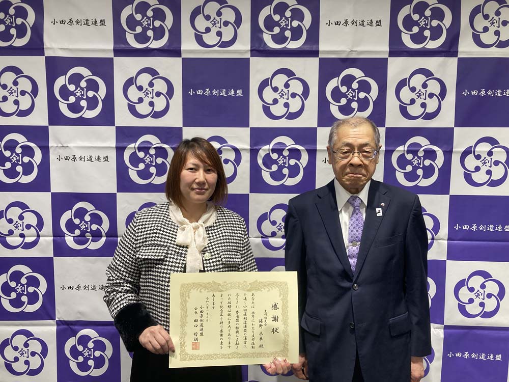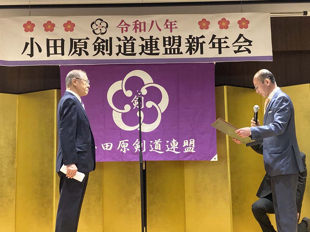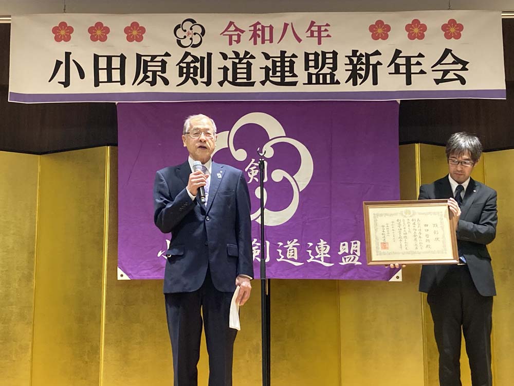 昨年、剣道有功賞を受賞された、小田原剣道連盟会長の田口哲朗先生へ顕彰状と記念品を贈呈いたしました。